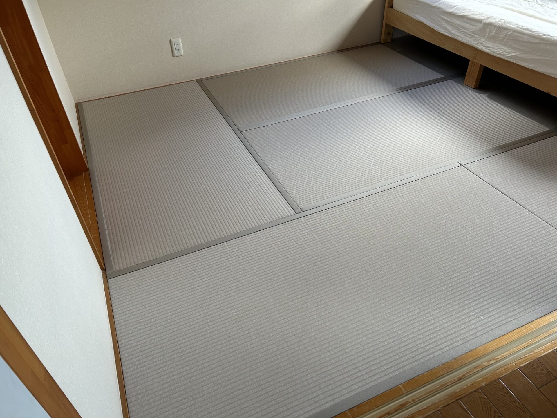 これまでお使いの畳は天然い草の畳表でしたが、今回は「和紙表」を使用した新しい畳へと交換いたしました。