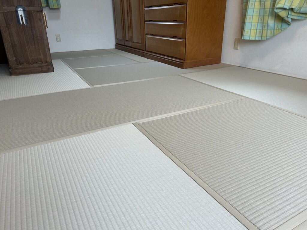 さいたま市のお客様 「特殊な薄畳」の新調 灰桜色に白茶色の細縁(8分縁)