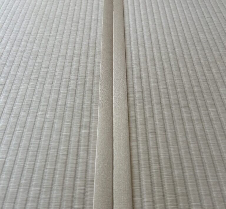 畳縁にはストリーム白茶色をお選びいただき、幅はお客様のご希望で細めの「8分縁(約2.5cm)」にいたしました。