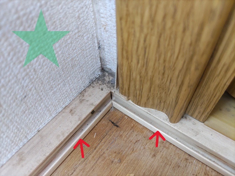 四隅(壁側)には畳縁を固定する専用パーツが取り付けられており、畳縁を取り外してもそのパーツの一部が部屋側に突出して残ってしまうことです。
