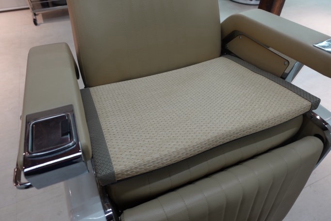 事前にバーバーチェアのお写真を送っていただいておりましたので、「クッション性の良い座面」であることを確認し、座った際に座面と一緒に沈む “しなり” が必要だと考えました。