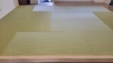 琉球畳 セキスイ 目積リーフグリーンの薄畳 琉球畳 施工例 2022.03.112022.03.14 畳の厚さが15㎜の薄畳の琉球畳になっています。 セキスイ樹脂表の目積リーフグリーン色ですが、ベージュ系の色味に写ってしまいました。 実際は、もう少し薄く緑の入ったほどよい黄緑色です。 はっきりとした市松模様には見えておりませんが、光の差し込みや見る角度によって市松模様に見えてきます。 すっきりとしたやさしい色合いです (^^)
