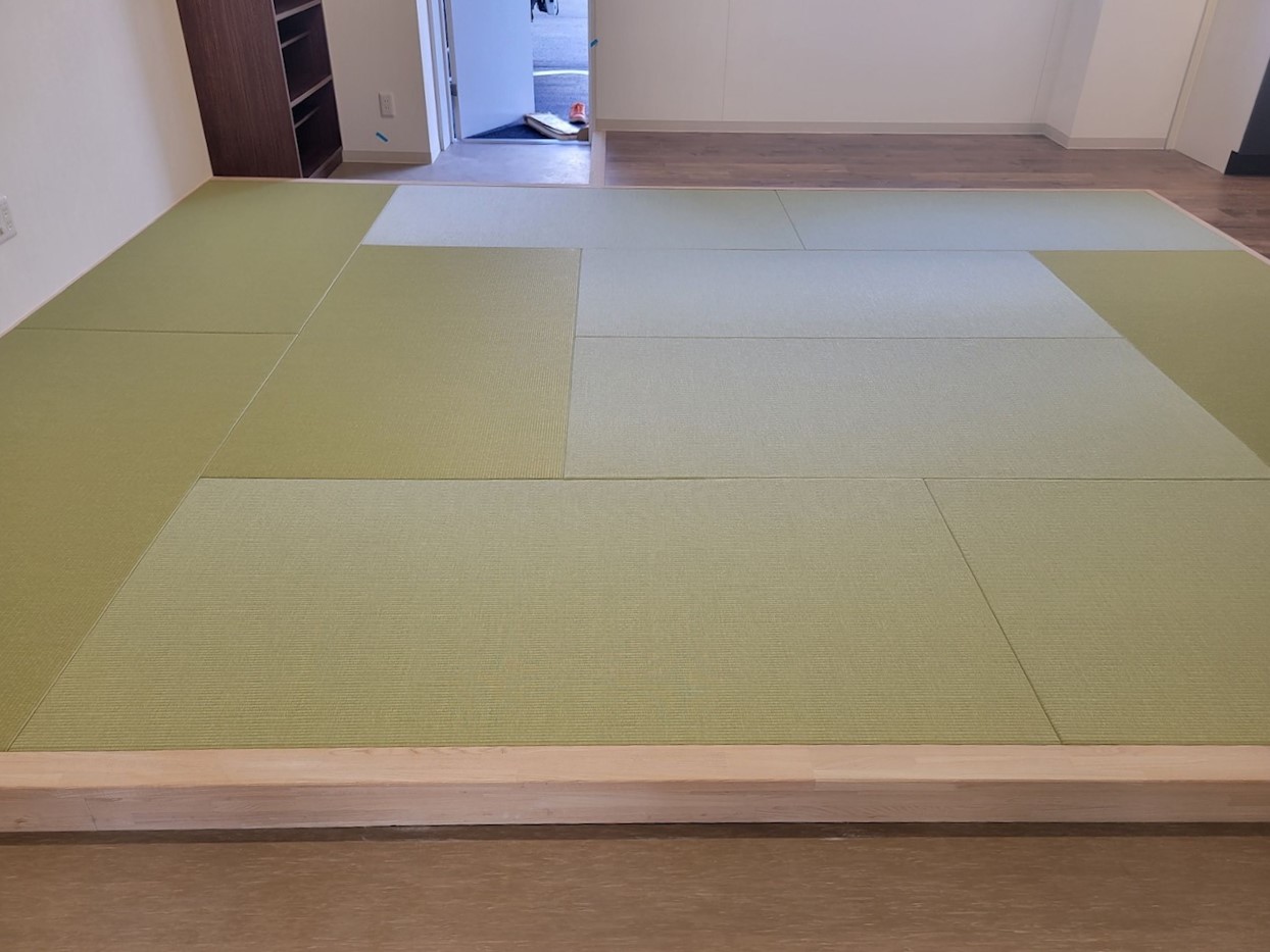 敷き込み後は、広々として使いやすく、明るい印象の畳スペースになりました。