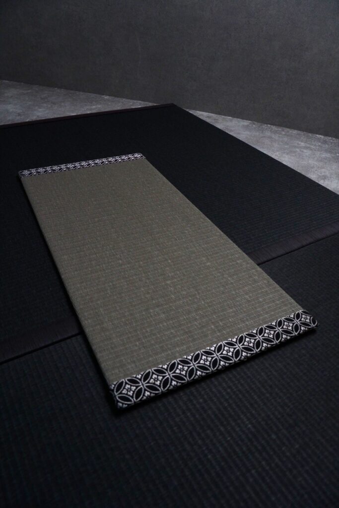選びいただいた畳表は、落ち着いた質感が魅力の グレー色の目積織り(めせきおり)