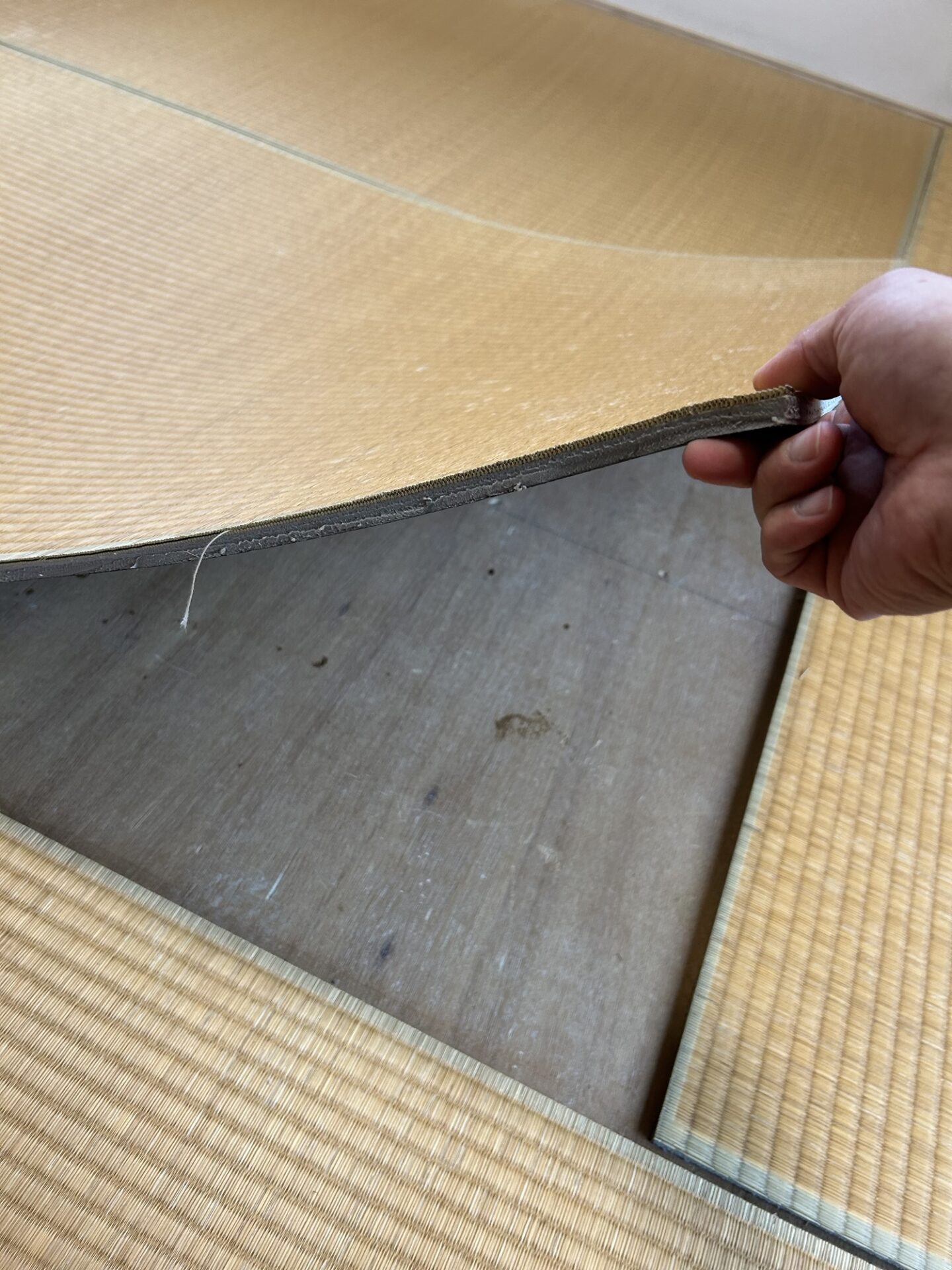 お話を伺うと、お部屋には一般的な畳とは異なる「特殊な薄い畳」が敷かれているとのことでした。